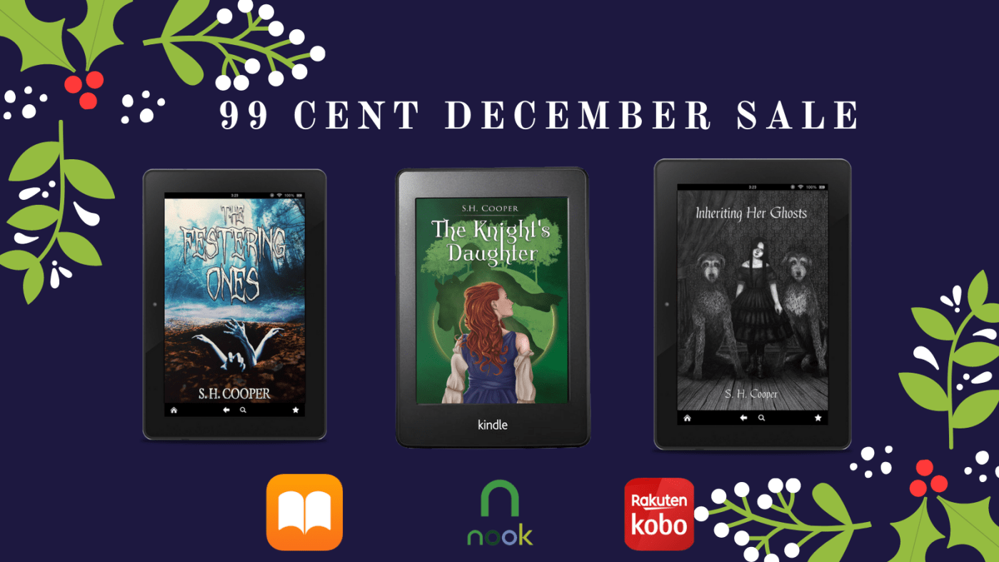 For the entire month of December, THE FESTERING ONES, THE KNIGHT’S DAUGHTER, & INHERITING HER GHOSTS will be only 99 cents wherever they’re sold (EXCLUDING Amazon)! Please share to help an indie author out ❤💚